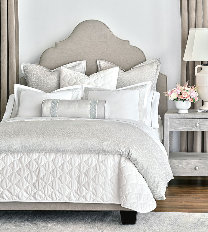 这款优雅的床品系列,以提花编织的动物图案和闪着微光的埃及棉,搭配绗缝工艺的床盖和装饰欧枕,低调奢华的银色和明亮的白色相互搭配,定能成为众人瞩目的焦点。
