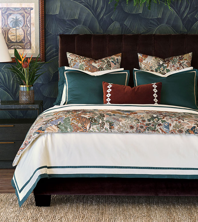一起探索奢华灵感的世界,感受不羁的时尚气质。将复古的狩猎风格与传统艺术相结合,用数字印花的工艺呈现出图案和色彩的独特美学。 精致的哑光天鹅绒抱枕和100%有机意大利埃及棉的缎纹面料,更凸显饱和的色调和体验真正的奢华感受。