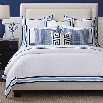 干净的风格和经典的美学,Barclay将宁静小乡村的潺潺水声赋予给夏尔系列。中性的色调由厚厚的边框条纹构成,大片留白适合定制和随意混搭,一个闪烁的枕头或是简约几何装饰枕,都能让其完美变身!