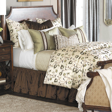 一股自由气息透过落地窗舒展在各个角落,典雅的杏白色调传递出亲近自然的意蕴。Brookfield以素雅淡美的锦织图案为特色,可以翻转的被褥面与秀丽的条纹床裙筑出一幕简洁大方,匠心独特的完美邂逅。带有精致吊穗的四方脚凳搭配清新花纹的窗饰帷幔,写意般的奢美生活自此萦绕您的四周。